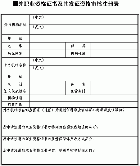 国外职业资格证书及其发证资格审核注册表(图